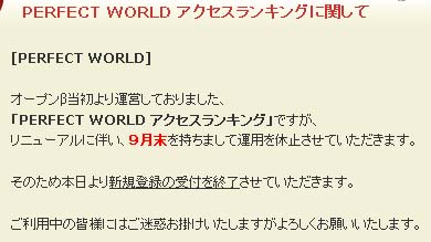 Perfect World -完美世界- 記録